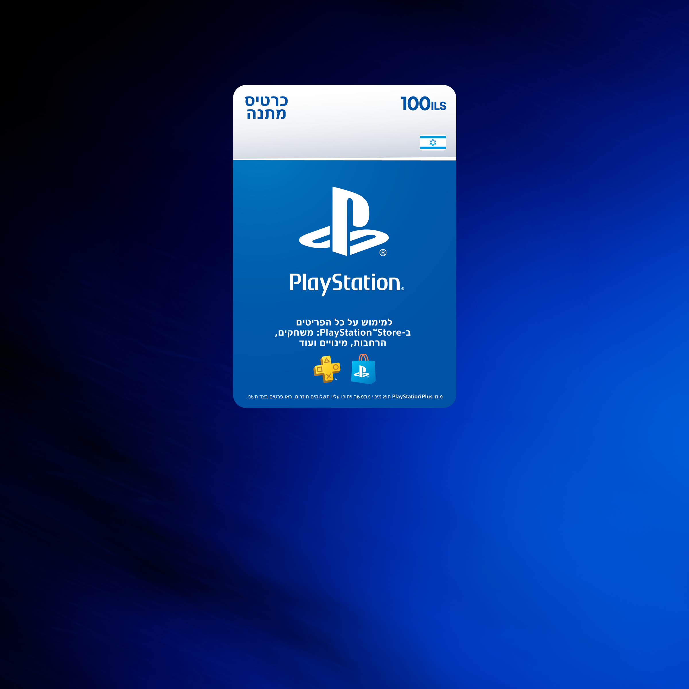 שובר דיגיטלי בשווי ₪100 לשימוש בחנות ה PlayStation Store